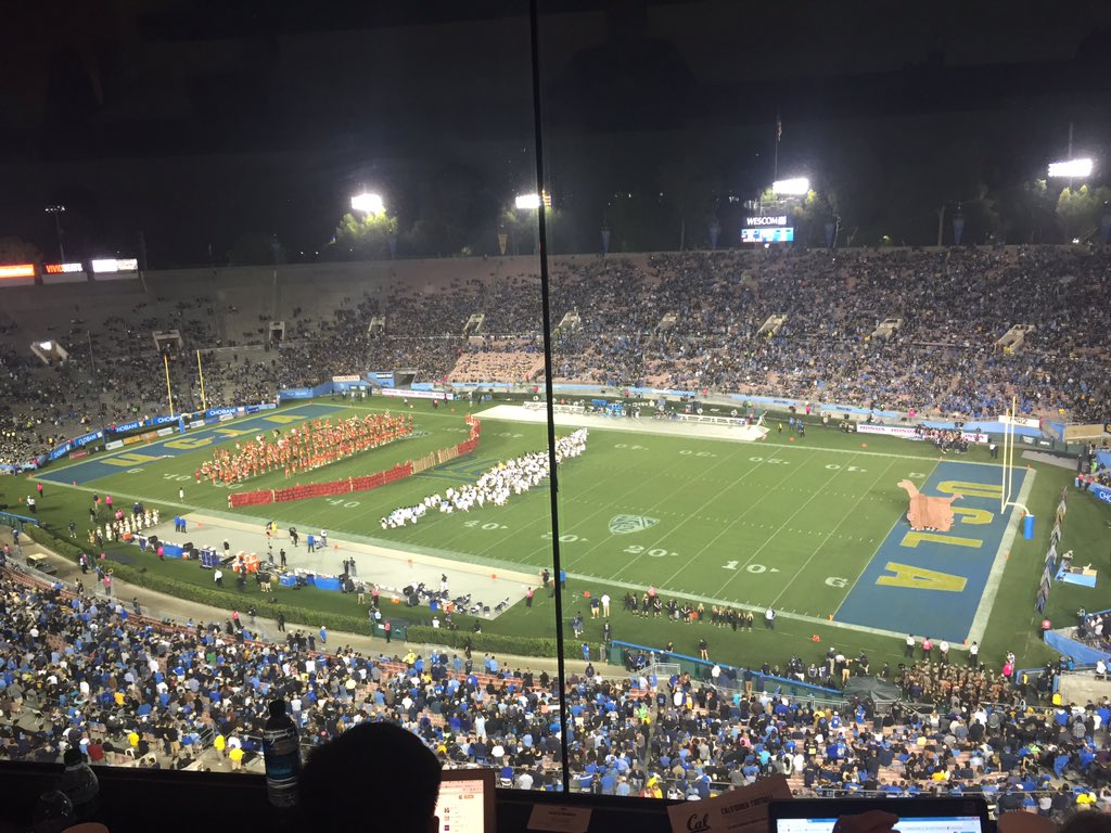 Meanwhile in college marching bands! UCLA and Cal combine to do a massive "Fall of Troy" pisstake of USC. Featuring an actual massive moving horse thing.