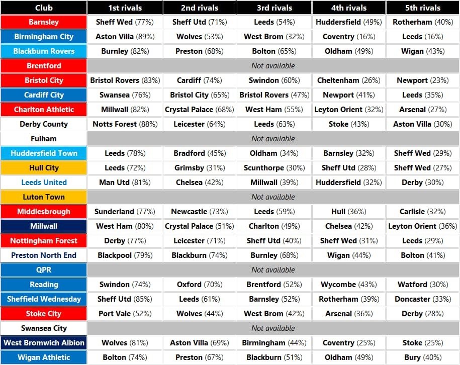 Outside the league Stoke hate us the most with Crewe surprisingly not even making their hate list and the biggest surprise is that Burton rank Vale as their biggest rivals.